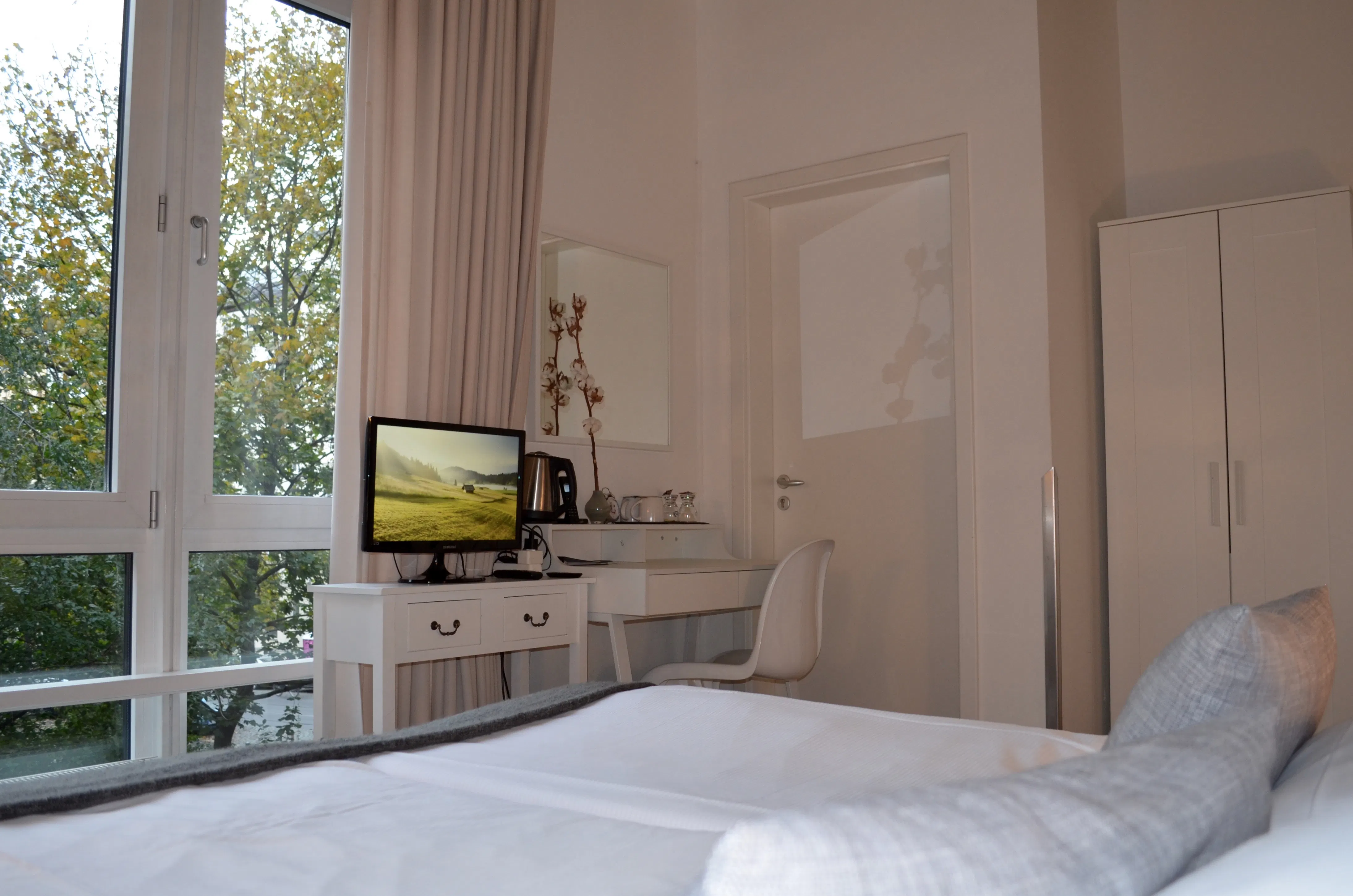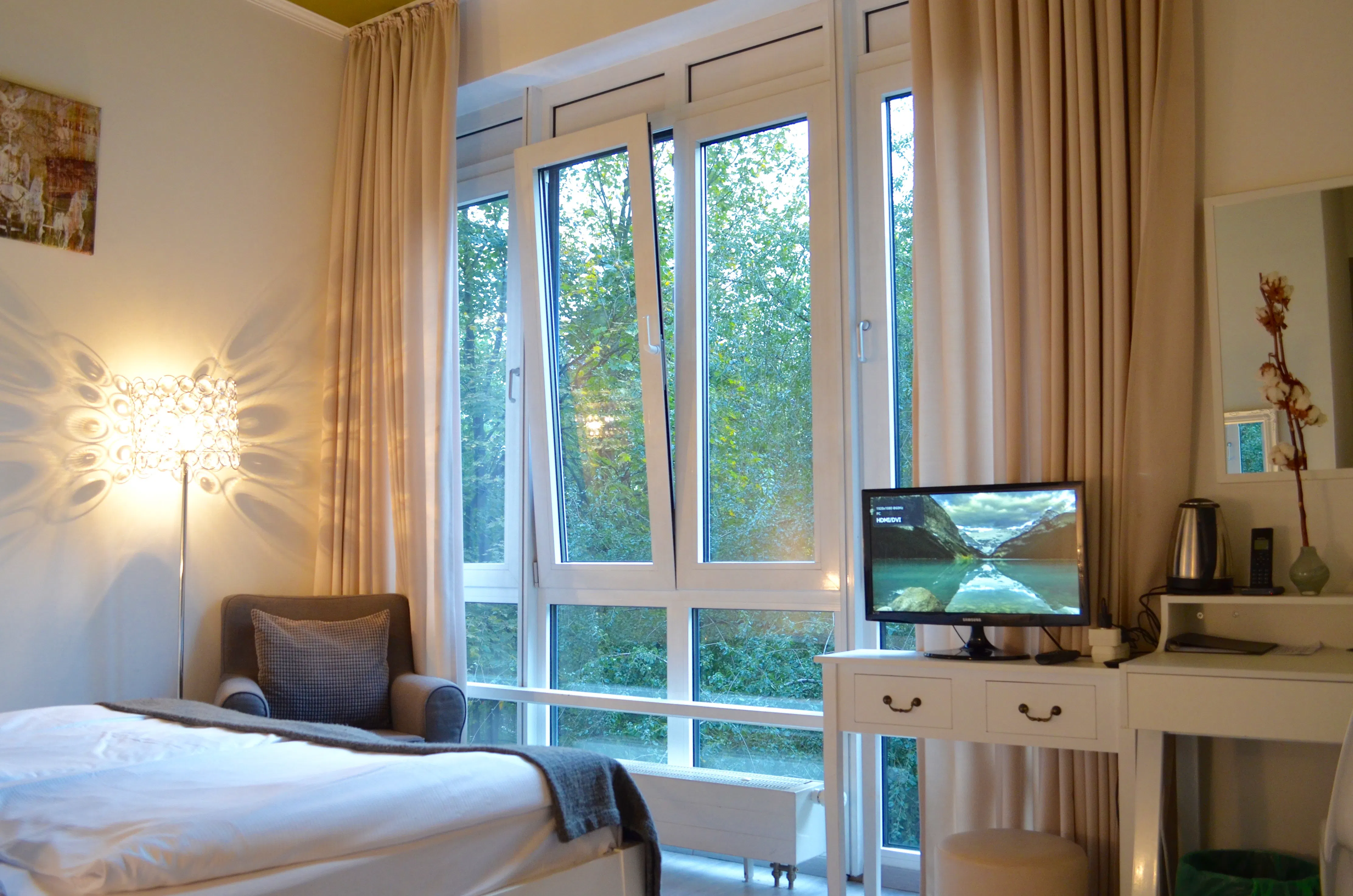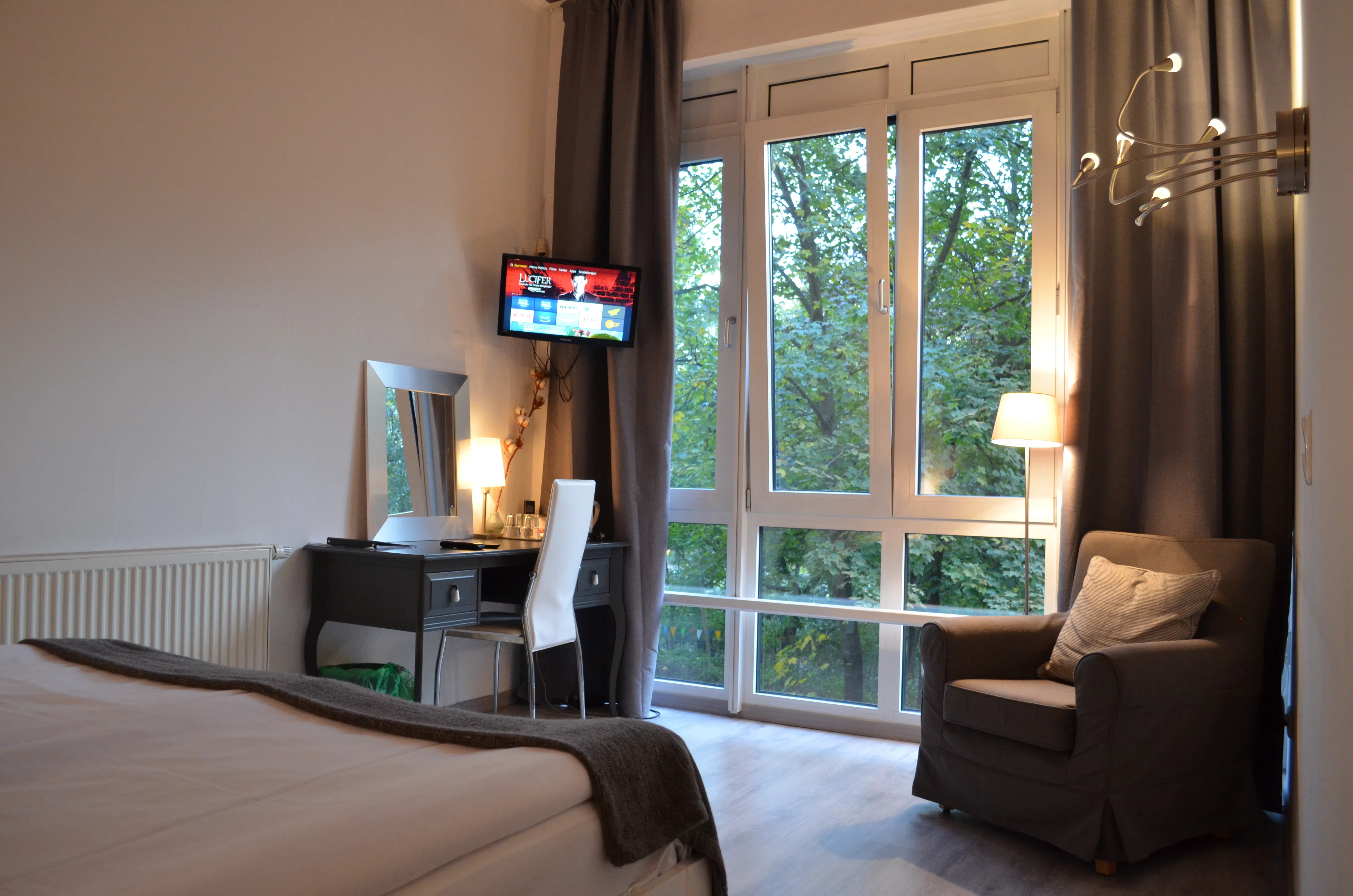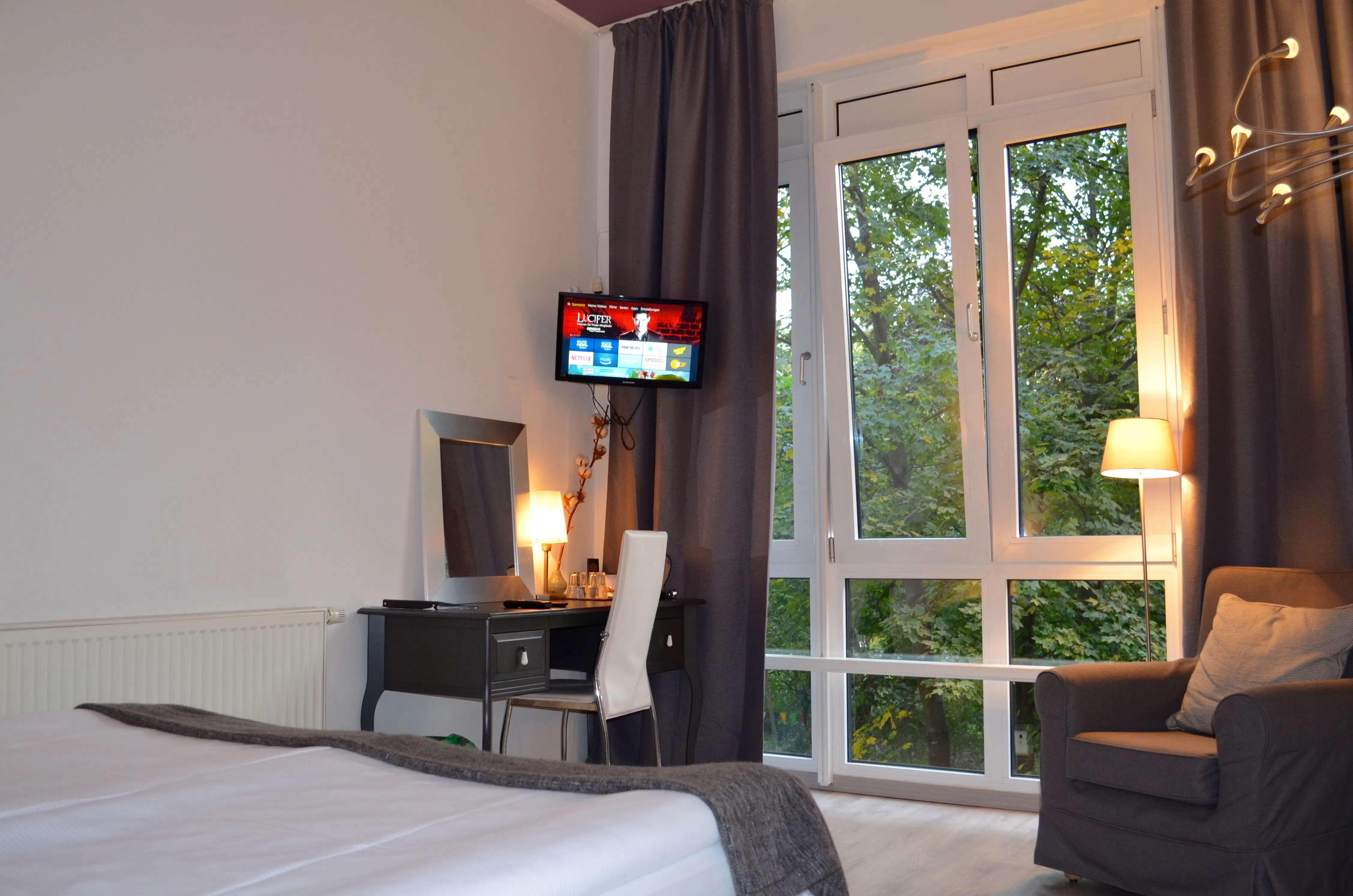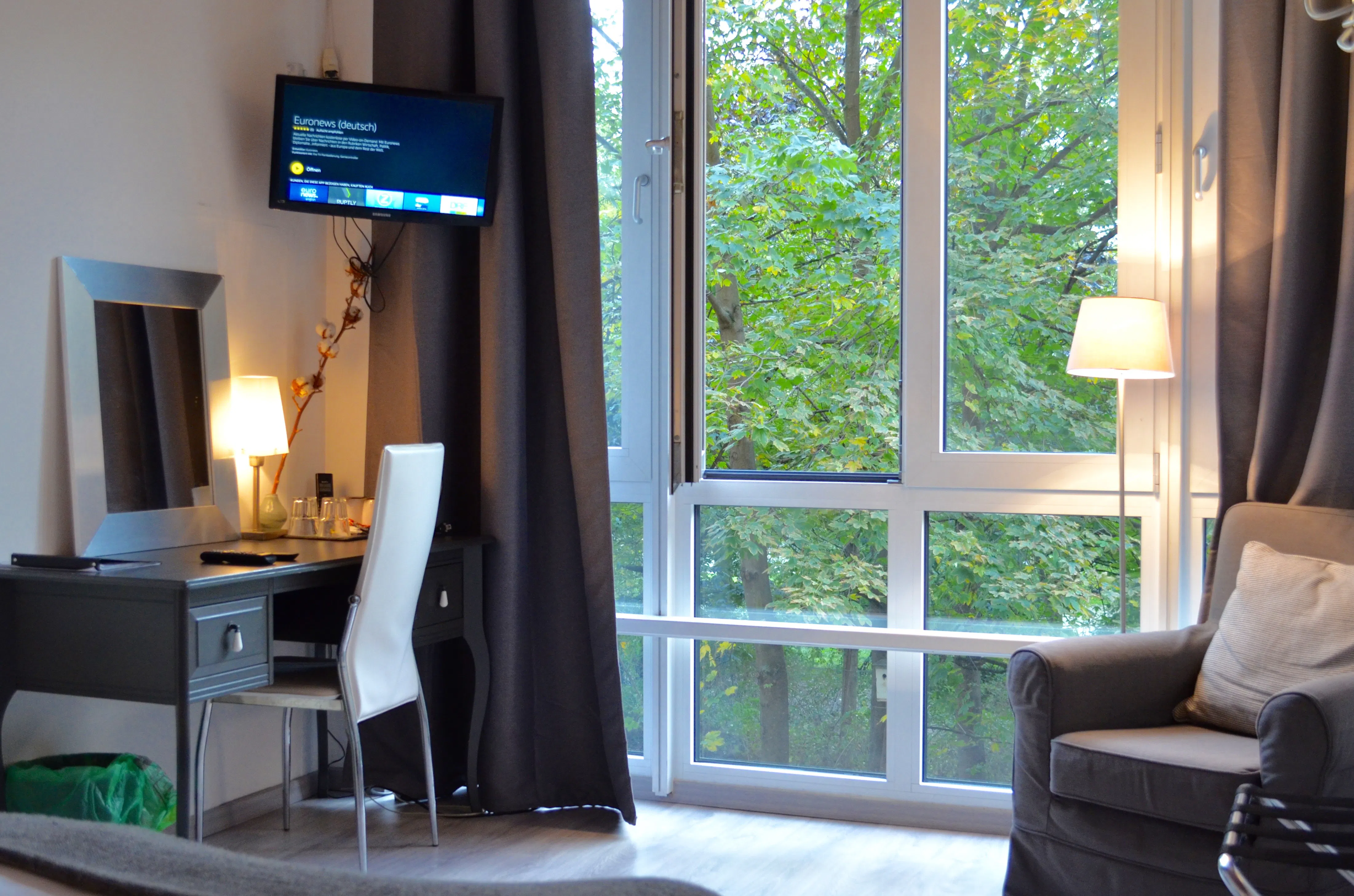 Alle Hotelzimmer sind Doppelzimmer die wir gerne auch zur Einzelnutzung an Sie vermieten und fast alle bieten einen direkten Parkblick aus wandhohen Fenstern. Sie verfügen über ein komfortables Doppelbett, Sessel, ein modernes Duschbad, einen Fön, digitales Fernsehen und einen Schreibtisch. Ein Zustell- oder Babybett kann auf Anfrage gerne dazu gebucht werden.